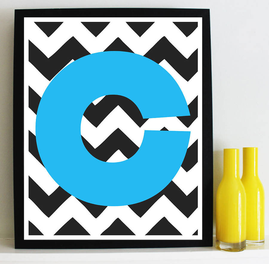 A cool, original letter and chevron fine art print by award-winning typographic boutique More Than Words. A perfect gift.