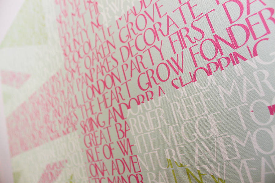 Created using up to 200 of your special words: favourite places, foods, sports, quirky sayings, family names – absolutely anything you like.